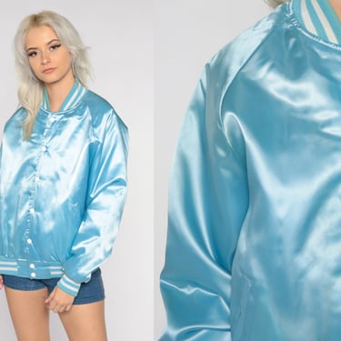 Baby Blue Bomber Jacket 80s Baseball Jacket Snap Up Varsity Shop Exile Tucson AZ Very well made.