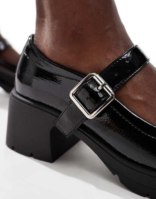 ASOS DESIGN Wide Fit Saxton chunky mary jane heeled shoes in black patent ASOS Very well made.